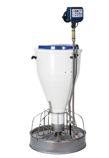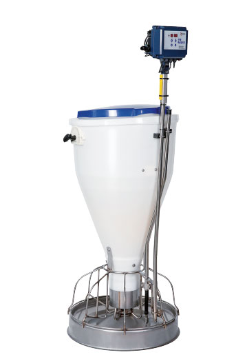 "돼지의 성장과 사료 효율을 극대화하도록 설계된 액상급이시스템 입니다. 사료가 급이기에 공급될 때 설정된 양의 물이 자동으로 함께 공급되면서 액상사료화 되어, 돼지는 사료와 물 섭취를 편하고 빠르게 하게 됩니다."
